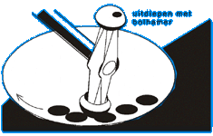Met de stelhamer slaan we in concentrische cirkels van binnen naar buiten.
